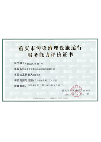 重慶市污染治理設(shè)施運(yùn)行服務(wù)能力評(píng)價(jià)證書