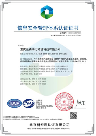 信息安全管理體系認(rèn)證證書